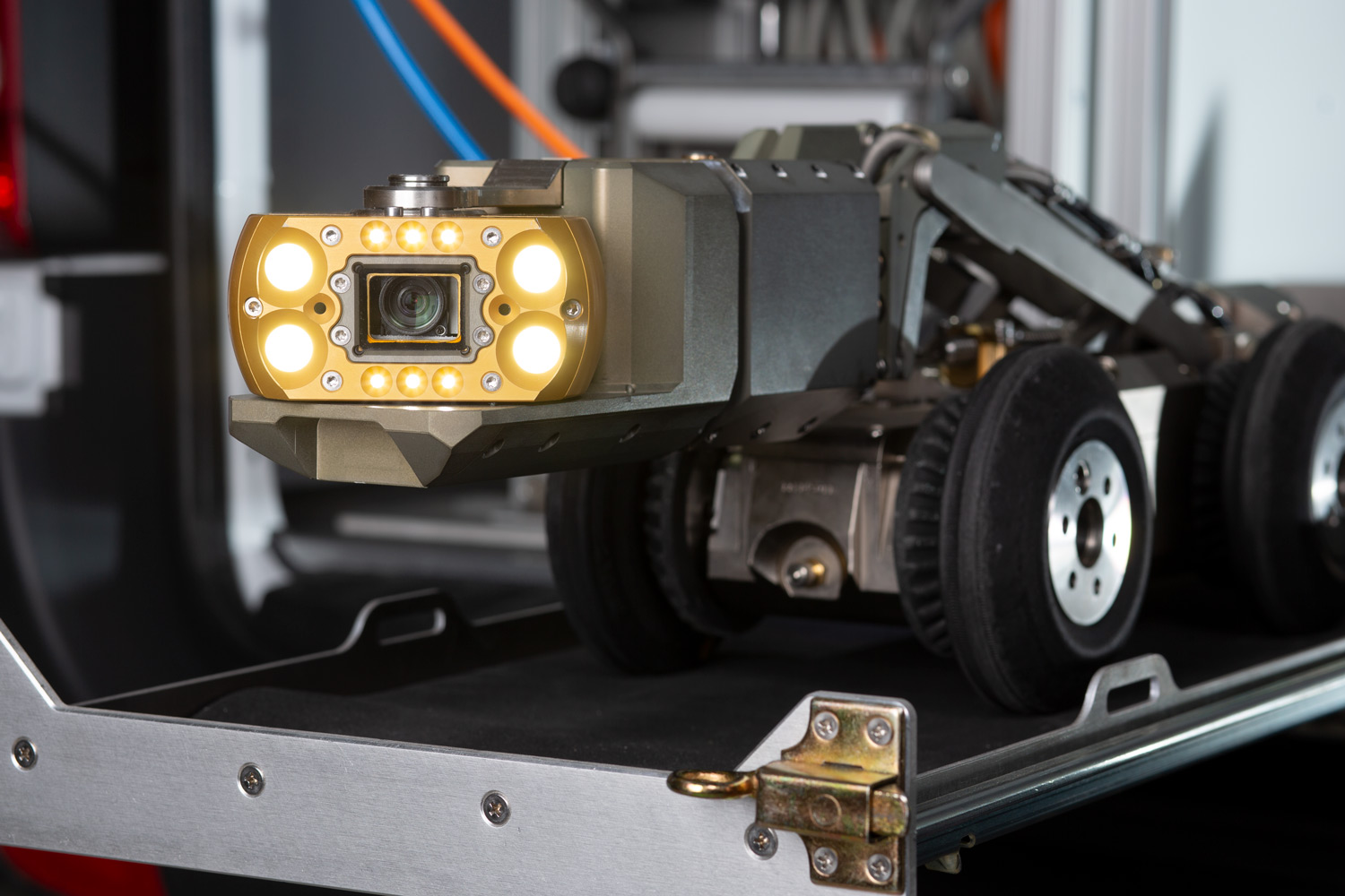 Our main sewer inspection duo (crawler L 135 + camera KS 135 HD Scan) has other talents, too. Equipped with the optionally available scan function, it uses a 2-point precision laser to find even the smallest deformations in main lines and measure them accurately – selectively and over the entire distance.