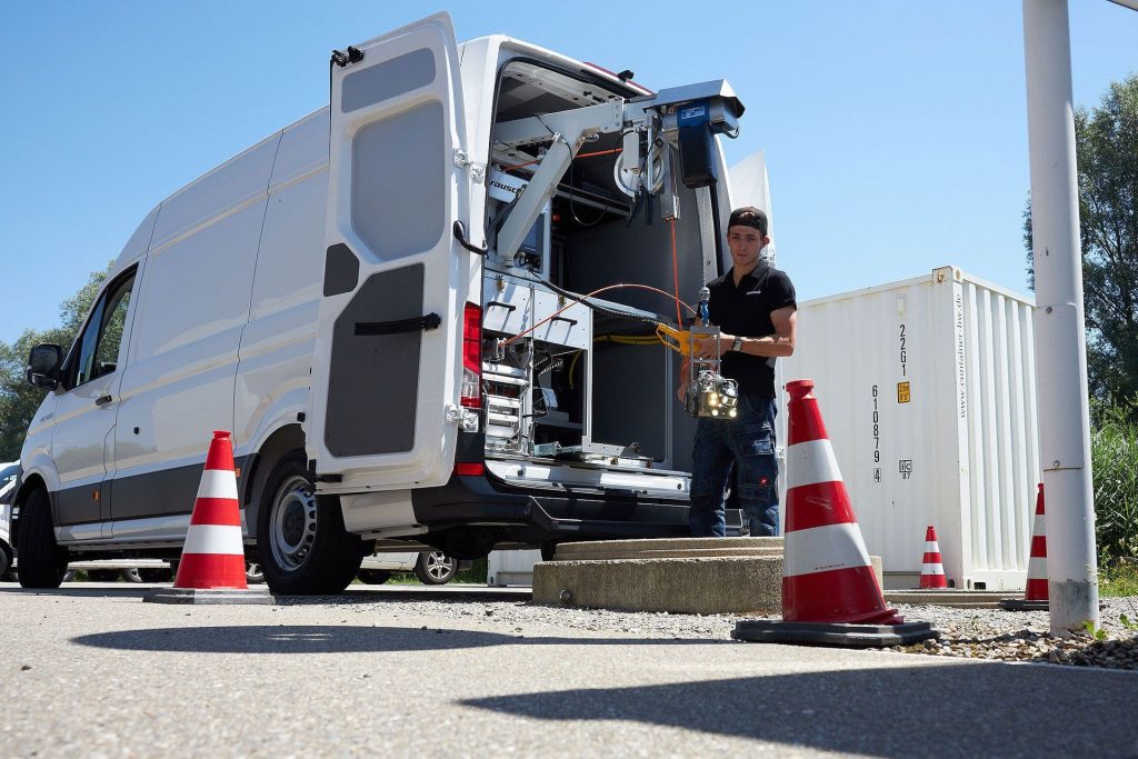 FW 90 crawler – Our small all-rounder with three driven axles and high weight for optimum traction. Thanks to integrated laser diodes, the digital pan and tilt camera KS 60 can determine diameters precisely.